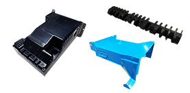 自動車部品、オーディオ部品、家電部品、住宅建築部品、OA部品、医療部品、プラスチックベアリング(リテーナー)など。 量産に入るまでの試作や、少ロット生産から多数生産まで対応しています。また、プラスチック成形では塗装、印刷、ホットスタンプ、メッキなどの2次加工後の、製品出荷も行っています。